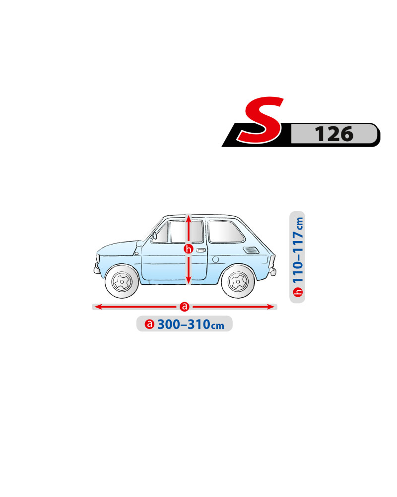Materiał tekstylny, z którego wykonana jest plandeka dopasuje się zarówno do nieco mniejszego, jak i większego samochodu o podobnym kształcie i wymiarze nie przekraczającym podanego powyżej obwodu.