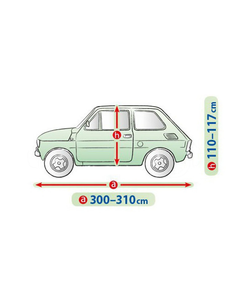 Materiał tekstylny, z którego wykonana jest plandeka dopasuje się zarówno do nieco mniejszego, jak i większego samochodu o podobnym kształcie i wymiarze nie przekraczającym podanego powyżej obwodu.