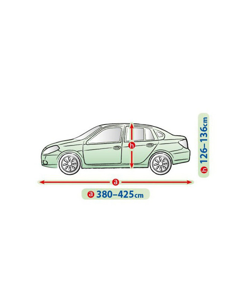 • Pasuje na pojazdy o wymiarach: długość 380-425 cm, maksymalny obwód 1146 cm