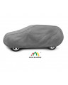 Niezwykłe własciwości wielowarstwowego materiału sprawiają, że pokrowiec nie przemaka, przy jednoczesnym odprowadzaniu pary wodnej spod pokrowca na zewnątrz. Każda oznaka wilgoci, która zgromadzi się pod pokrowcem szybko wyparuje, co pozwoli uniknąć rdzewieniu samochodu oraz powstawaniu pleśni. Pokrowiec przystosowany jest zarówno do doraźnego jak i długotrwałego stosowania. Pokrowiec można prać ręcznie w temperaturze 40 stopni. Pokrowiec ma kolor popielaty, który jest niezwykle praktyczny a zarazem świetnie się prezentuje. Przez środek pokrowca biegnie napis przedstawiający nazwę producenta i logo firmy oraz nazwę materiału z którego został zrobiony- da Ci to gwarancję oryginalności i wysokiej jakości produktu. Różnorodność kształtów i rozmiarów sprawia, że możesz wybrać pokrowiec, który dobrze dopasuje się do Twojego samochodu.