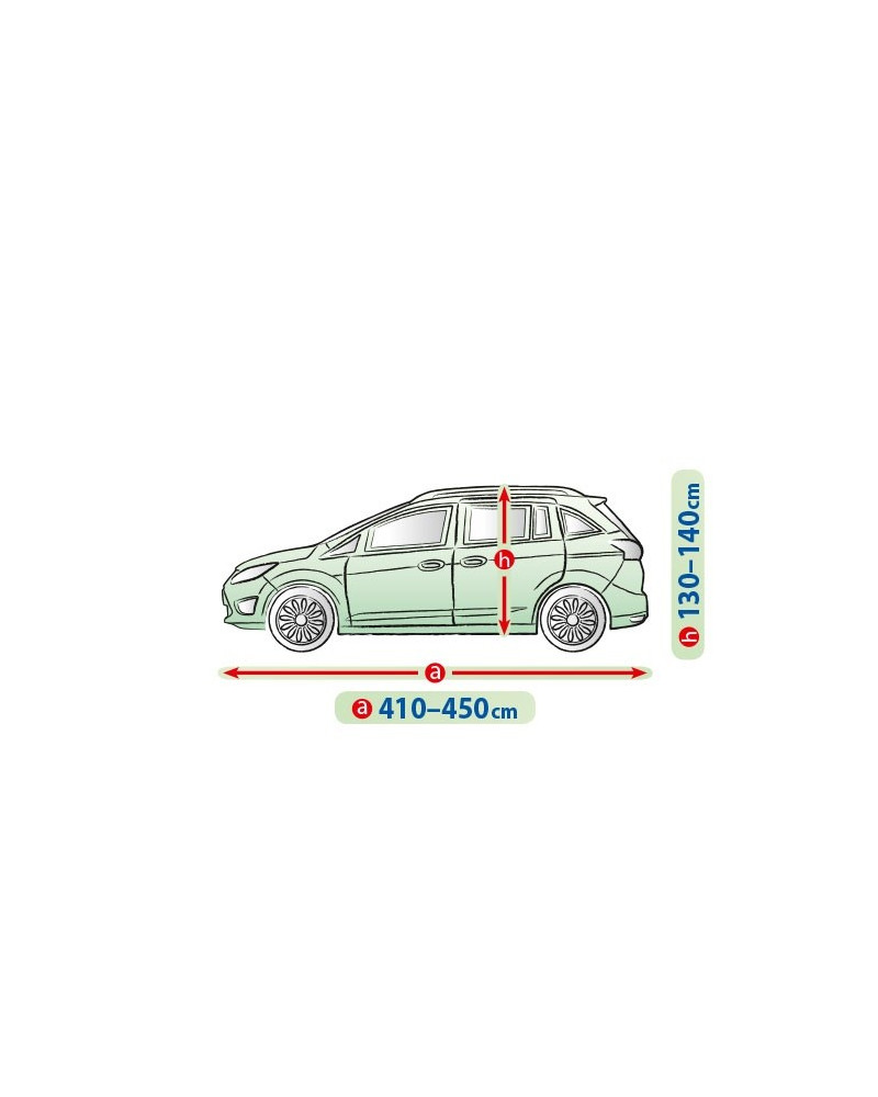 Materiał tekstylny, z którego wykonana jest plandeka dopasuje się zarówno do nieco mniejszego, jak i większego samochodu o podobnym kształcie i wymiarze nie przekraczającym podanego powyżej obwodu.