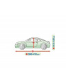Materiał tekstylny, z którego wykonana jest plandeka dopasuje się zarówno do nieco mniejszego, jak i większego samochodu o podobnym kształcie i wymiarze nie przekraczającym podanego powyżej obwodu.