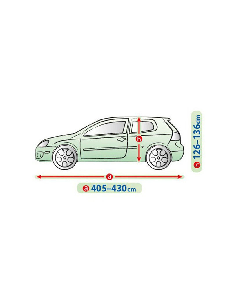 Materiał tekstylny, z którego wykonana jest plandeka dopasuje się zarówno do nieco mniejszego, jak i większego samochodu o podobnym kształcie i wymiarze nie przekraczającym podanego powyżej obwodu.