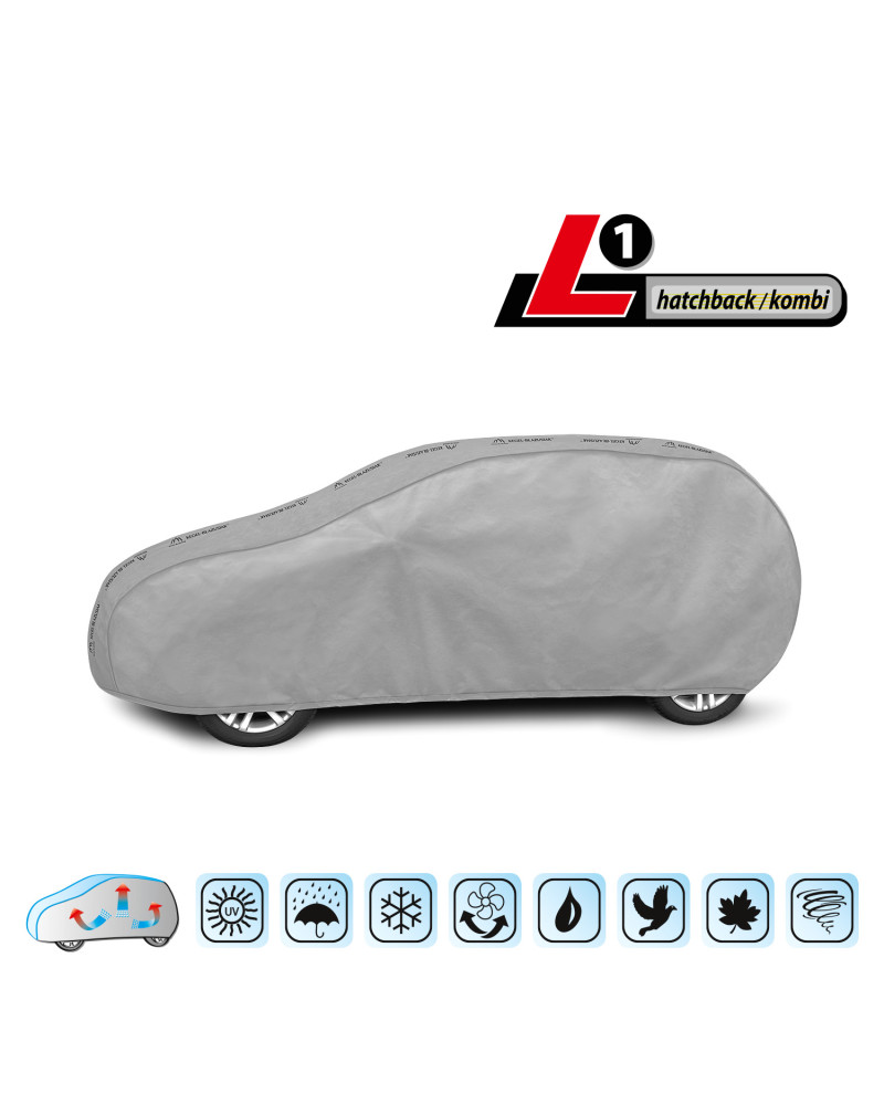 - zakrywa cały pojazd lekko zachodząc pod spód;