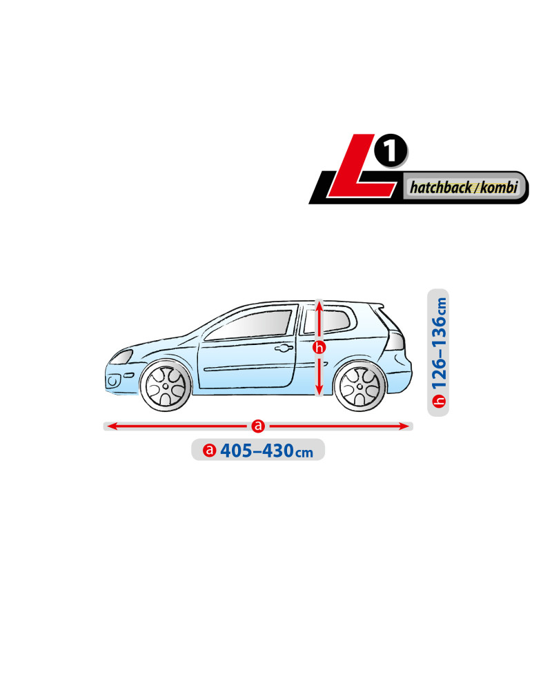Materiał tekstylny, z którego wykonana jest plandeka dopasuje się zarówno do nieco mniejszego, jak i większego samochodu o podobnym kształcie i wymiarze nie przekraczającym podanego powyżej obwodu.