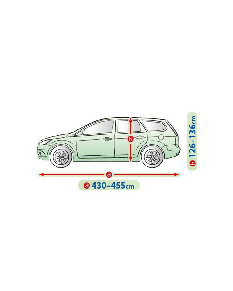 Materiał tekstylny, z którego wykonana jest plandeka dopasuje się zarówno do nieco mniejszego, jak i większego samochodu o podobnym kształcie i wymiarze nie przekraczającym podanego powyżej obwodu.