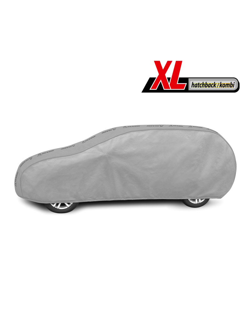 - zakrywa cały pojazd lekko zachodząc pod spód;