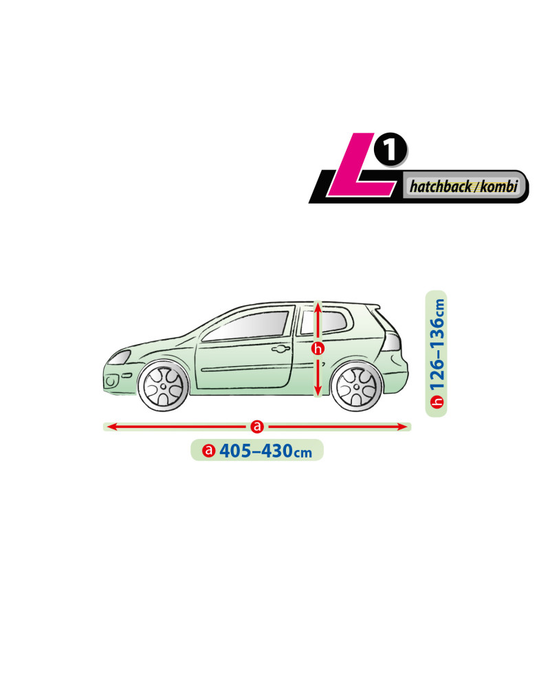 • Pasuje na pojazdy o wymiarach: długość 406-430 cm, maksymalny obwód 1156 cm
