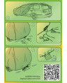 Przed założeniem pokrowca na samochód złożyć boczne lusterka oraz złożyć lub odkręcić antenę. Pokrowiec założyć na czysty i suchy samochód stroną z nadrukiem na zewnątrz. Dla ułatwienia prawidłowego ułożenia pokrowca na samochodzie w pokrowiec wszyta jest wszywka FRONT z przodu pokrowca i REAR z tyłu pokrowca (oznaczenie pokrywają się z przodem i tyłem samochodu).