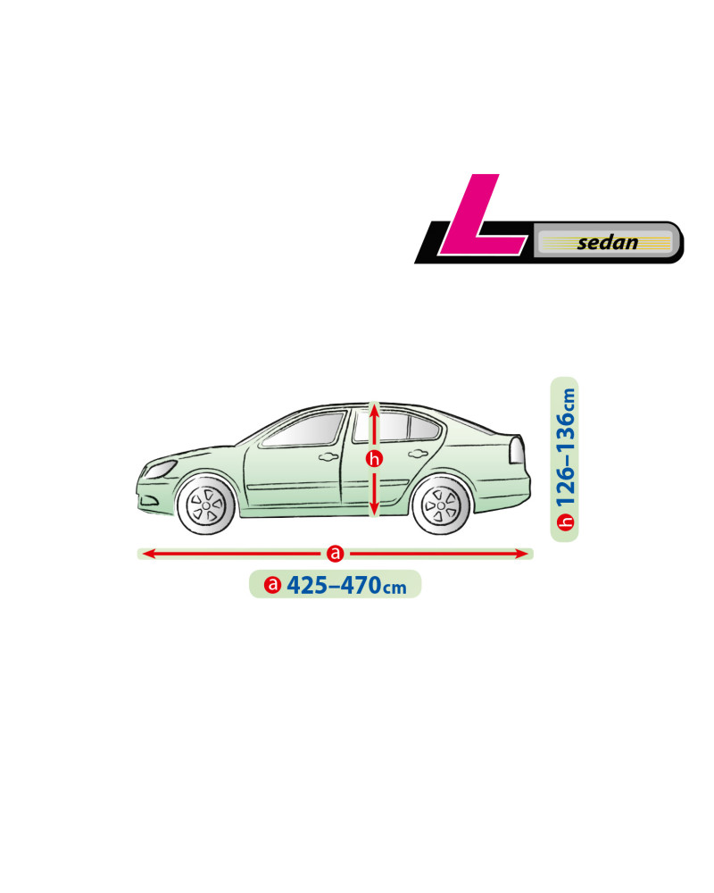 Na etykiecie zewnętrznej pokrowca znajduje się oznaczenie rozmiaru wraz z rysunkiem przedstawiającym kształt i wymiary samochodu na który przeznaczony jest pokrowiec. Proszę sprawdzić czy dokonali Państwo zakupu pokrowca w odpowiednim rozmiarze na samochód na którym będzie użytkowany. Dobrze dopasowany pokrowiec z mocno zaciągniętą i zawiązaną linką ściągacza można bezpiecznie użytkować nawet podczas silnego wiatru. Jeżeli pokrowiec będzie użytkowany podczas bardzo silnego wiatru, pokrowiec można dodatkowo przymocować do kół samochodu za pętle wszyte w dolną krawędź pokrowca.