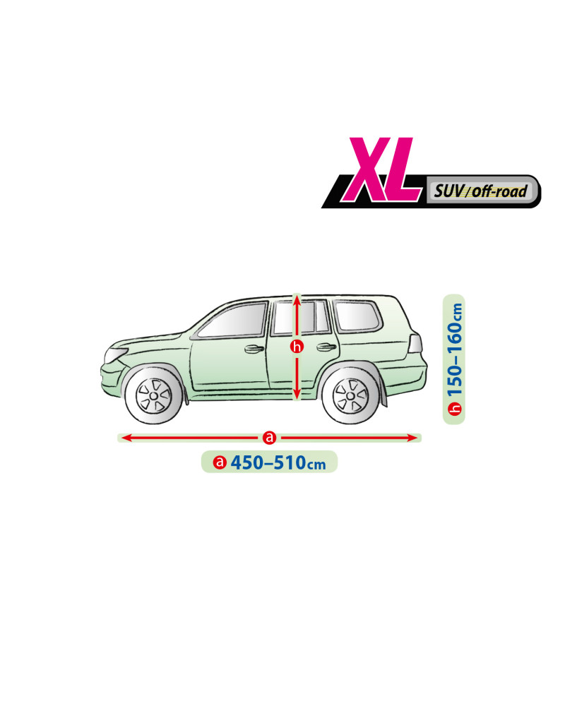 • Pasuje na pojazdy o wymiarach: długość 461-510 cm, maksymalny obwód 1316 cm