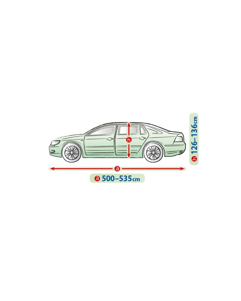 Materiał tekstylny, z którego wykonana jest plandeka dopasuje się zarówno do nieco mniejszego, jak i większego samochodu o podobnym kształcie i wymiarze nie przekraczającym podanego powyżej obwodu.