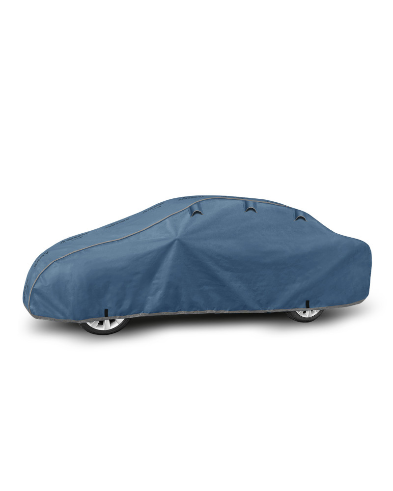 Niezwykłe własciwości wielowarstwowego materiału sprawiają, że pokrowiec nie przemaka, przy jednoczesnym odprowadzaniu pary wodnej spod pokrowca na zewnątrz. Każda oznaka wilgoci, która zgromadzi się pod pokrowcem szybko wyparuje, co pozwoli uniknąć rdzewieniu samochodu oraz powstawaniu pleśni. Pokrowiec przystosowany jest zarówno do doraźnego jak i długotrwałego stosowania. Pokrowiec można prać ręcznie w temperaturze 40 stopni. Pokrowiec ma kolor granatowy, który jest niezwykle praktyczny a zarazem świetnie się prezentuje. Przez środek pokrowca biegnie napis przedstawiający nazwę producenta i logo firmy oraz nazwę materiału z którego został zrobiony- da Ci to gwarancję oryginalności i wysokiej jakości produktu. Różnorodność kształtów i rozmiarów sprawia, że możesz wybrać pokrowiec, który dobrze dopasuje się do Twojego samochodu.