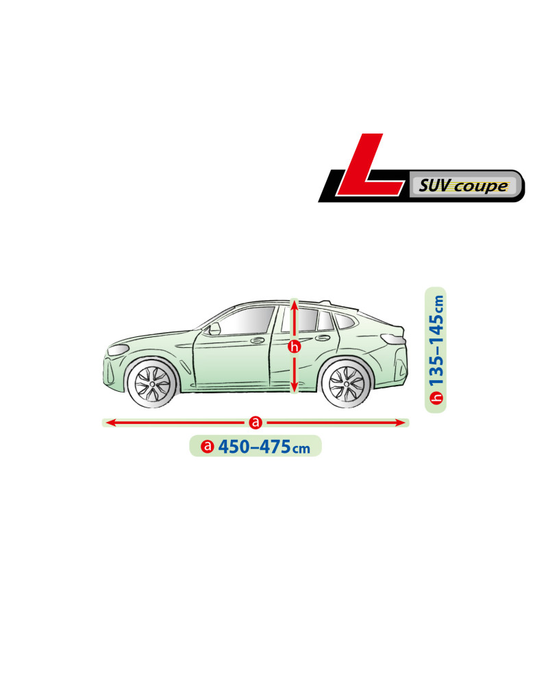 Materiał tekstylny, z którego wykonana jest plandeka dopasuje się zarówno do nieco mniejszego, jak i większego samochodu o podobnym kształcie i wymiarze nie przekraczającym podanego powyżej obwodu.