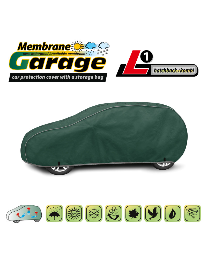 Wysokogatunkowy pokrowiec Membrane Garage to produkt dopasowany do potrzeb kierowców. Pokrowiec wykonany jest w całości aż z 4-warstwowego materiału, który jest gruby, mocny i wytrzymały. Pokrowiec chroni cały samochód przed szkodliwym wpływem środowiska. Pokrowiec Membrane Garage to odpowiednia ochrona pojazdu przez cały rok. Jego funkcjonalność docenić można w każdej porze roku. W sezonie zimowym zapobiega osadzaniu się śniegu, szronu i lodu, a także jest odporny na przymarzanie; na jesieni chroni przed deszczem, wiatrem, liśćmi, sokami z drzew; zaś w porach letnich i wiosennych ochrania przed promieniami UV, pyłem i ptasimi odchodami.