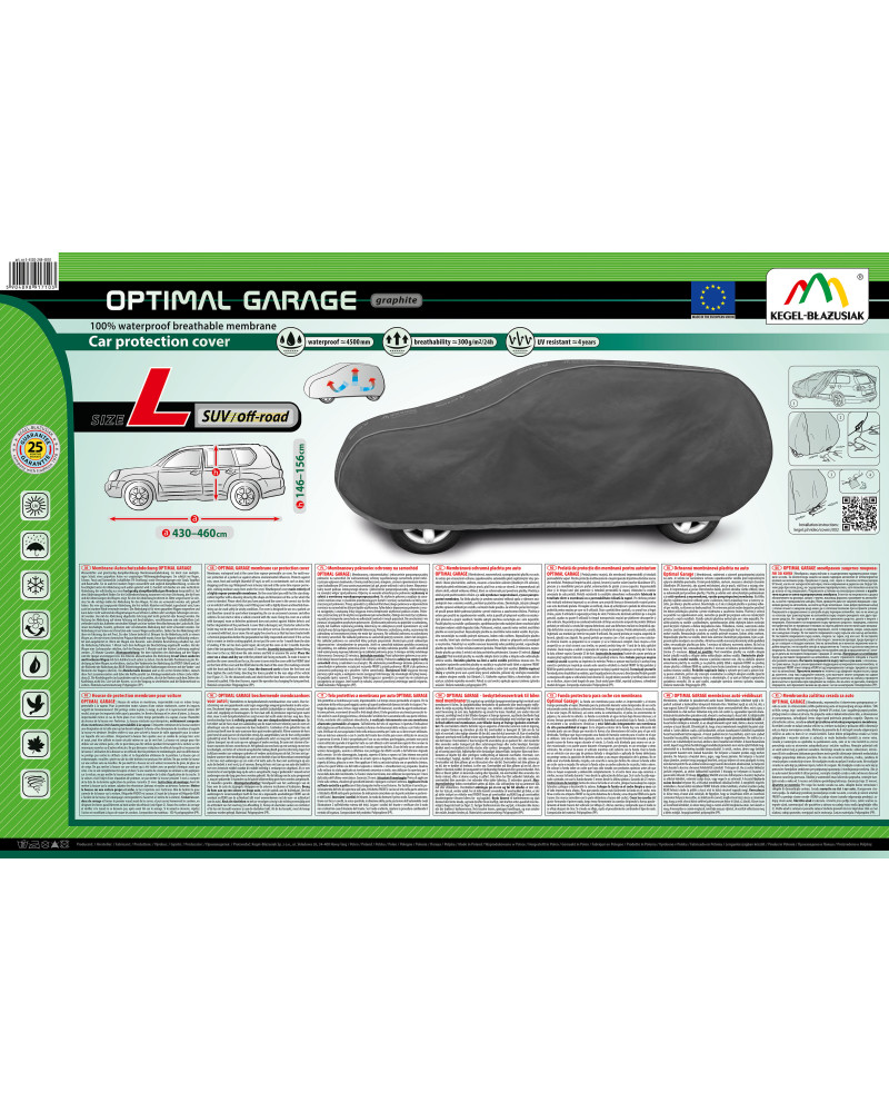 Niezwykłe właściwości wielowarstwowego materiału sprawiają, że pokrowiec nie przemaka, przy jednoczesnym odprowadzaniu pary wodnej spod pokrowca na zewnątrz. Każda oznaka wilgoci, która zgromadzi się pod pokrowcem szybko wyparuje, co pozwoli uniknąć rdzewieniu samochodu oraz powstawaniu pleśni. Pokrowiec przystosowany jest zarówno do doraźnego jak i długotrwałego stosowania. Pokrowiec można prać ręcznie w temperaturze 40 stopni. Pokrowiec ma kolor popielaty, który jest niezwykle praktyczny a zarazem świetnie się prezentuje. Przez środek pokrowca biegnie napis przedstawiający nazwę producenta i logo firmy oraz nazwę materiału z którego został zrobiony- da Ci to gwarancję oryginalności i wysokiej jakości produktu. Różnorodność kształtów i rozmiarów sprawia, że możesz wybrać pokrowiec, który dobrze dopasuje się do Twojego samochodu.