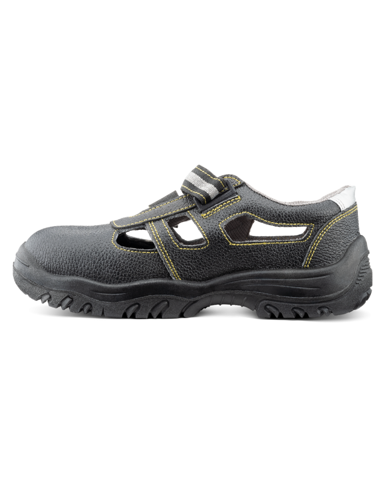Sandały bezpieczne Black Kneiter doskonale sprawdzą się w pracy jak i na co dzień. Produkt jest lekki, elastyczny dzięki zastosowaniu podeszwy z poliuretanu. Sandał uniwersalny przeznaczony do prac o zwiększonym stopniu ryzyka, zabezpieczający przed urazem przedniej części stopy. Zalecany na stanowiska pracy oraz wszędzie tam, gdzie zachodzi wymóg zastosowania obuwia bezpiecznego w podstawowej klasie ochrony zgodnie z zaleceniami przepisów BHP.