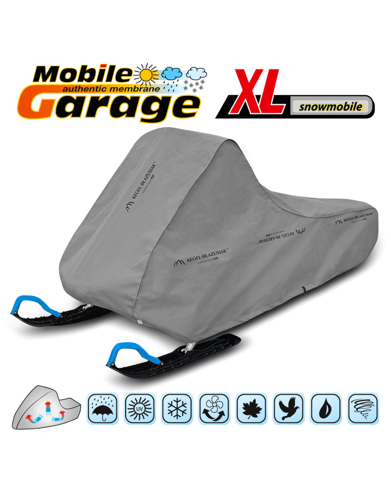 Nieprzemakalny pokrowiec do ochrony skutera śnieżnego przechowywanego na zewnątrz przed niekorzystnym wpływem środowiska. Odpowiedni także do użytku wewnątrz pomieszczeń. Chroni przed deszczem, śniegiem, szronem i promieniami słonecznymi (szkodliwym UV) oraz zanieczyszczeniami jak pył, ptasie odchody i soki z drzew. Nieprzemakalny i „oddychający” pokrowiec membranowy odprowadzający na zewnątrz wilgoć spod pokrowca. Odporny na warunki atmosferyczne.