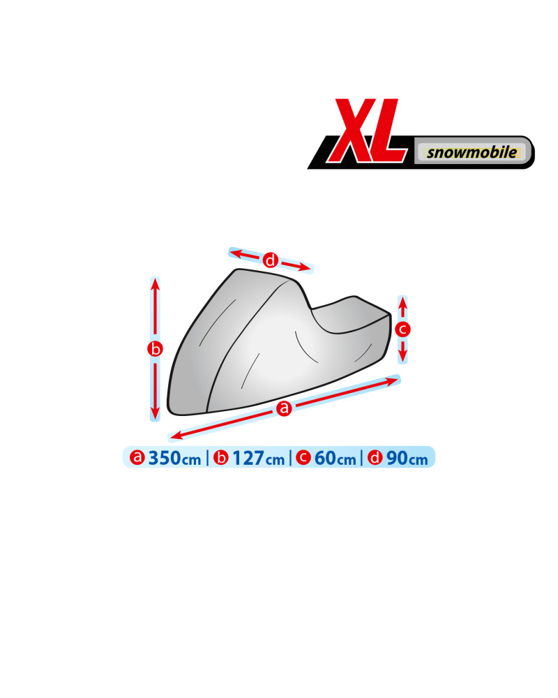 Na etykiecie zewnętrznej pokrowca znajduje się oznaczenie rozmiaru wraz z rysunkiem przedstawiającym kształt i wymiary skutera śnieżnego na który przeznaczony jest pokrowiec. Proszę sprawdzić czy dokonali Państwo zakupu pokrowca w odpowiednim rozmiarze na skuter śnieżny na którym będzie użytkowany.