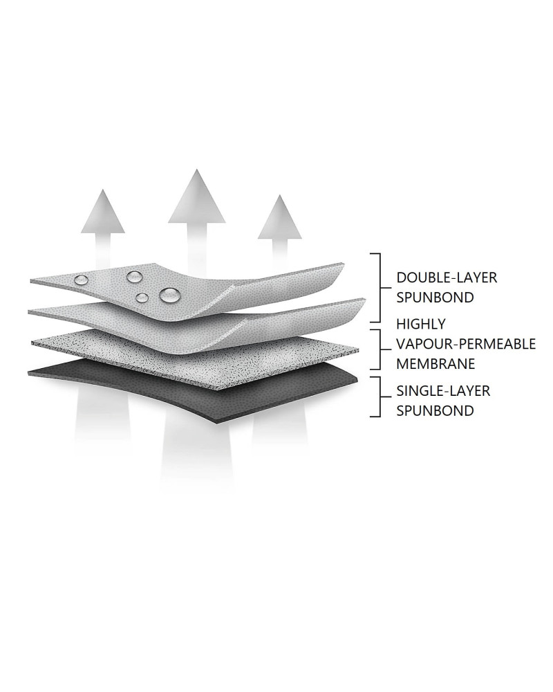 - nieprzemakalny nawet podczas intensywnego deszczu i jednocześnie paroprzepuszczalny;